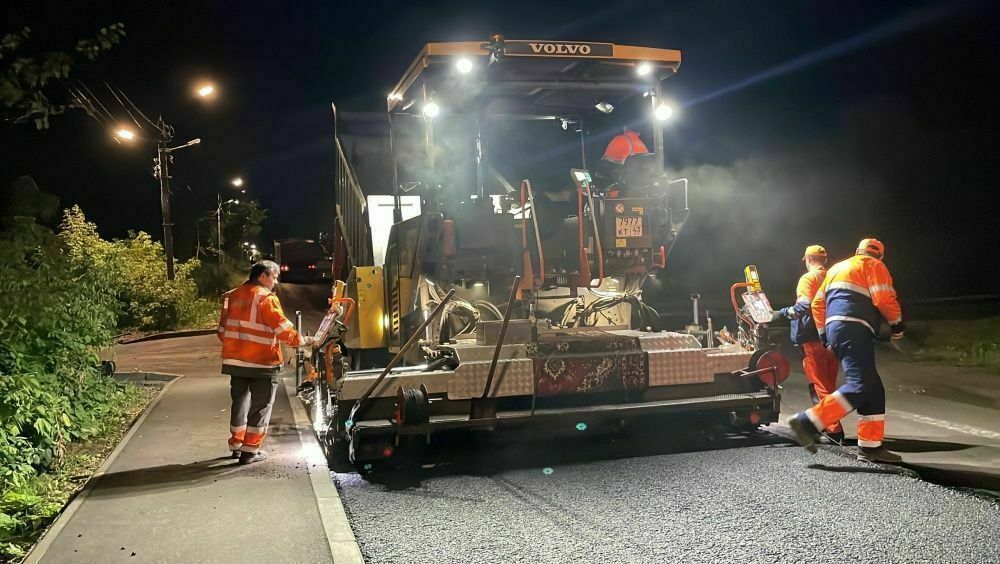 На ул. Центральной в Ганино дорожники приступили к укладке верхнего слой асфальтобетонного покрытия дороги. Работы проводятся в ночное время, чтобы днем не создавать заторы.