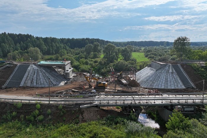 На данный момент специалисты подрядной организации «МостСтрой» завершили монтаж железобетонных балок, приступили к сборке стального пролёта, укрепили конусы, выполнили бетонирование шкафных стенок и ригелей. Установлены лестничные сходы и водоотводные телескопические лотки по откосам. Все работы идут по графику, с соблюдением технических стандартов и контроля качества, — рассказала заместитель директора Дорожного комитета Кировской области (подведомственное учреждение министерства транспорта) Екатерина Безгачева.