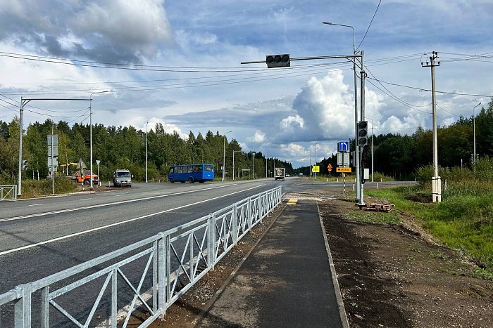 На 22-м километре Южного обхода Кирова, где дорога уходит к деревне Шутовщина, завершили работы по комплексному обустройству участка. Здесь установлен светофор, устроены тротуары, смонтированы пешеходные ограждения и новые остановочные павильоны, появилось освещение.