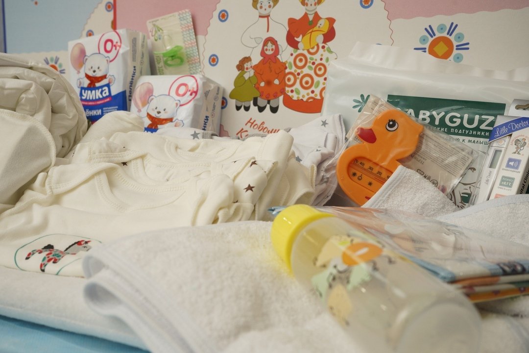 С 1 сентября 2022 года при рождении ребенка каждой семье дарят подарочный бокс. В коробке 19 предметов – самое необходимое для малыша в первые месяцы жизни. Подарочный набор включает в себя одежду, постельные принадлежности, средства личной гигиены.