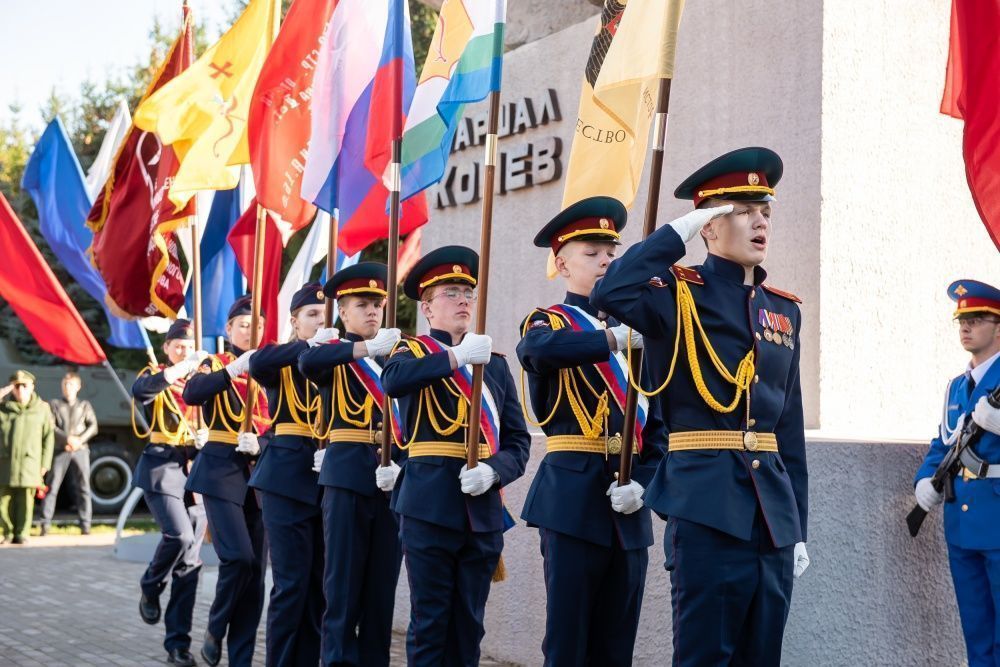 Перед зажжением Вечного огня присутствующие почтили минутой молчания погибших героев. Затем капсулу, огонь в которой был зажжен от мемориала на набережной Грина, к памятнику Маршала Конева перенесли участник СВО Андрей Нырков и юнармеец Данил Редкозубов. Затем состоялась церемония возложения цветов к памятнику прославленного маршала.