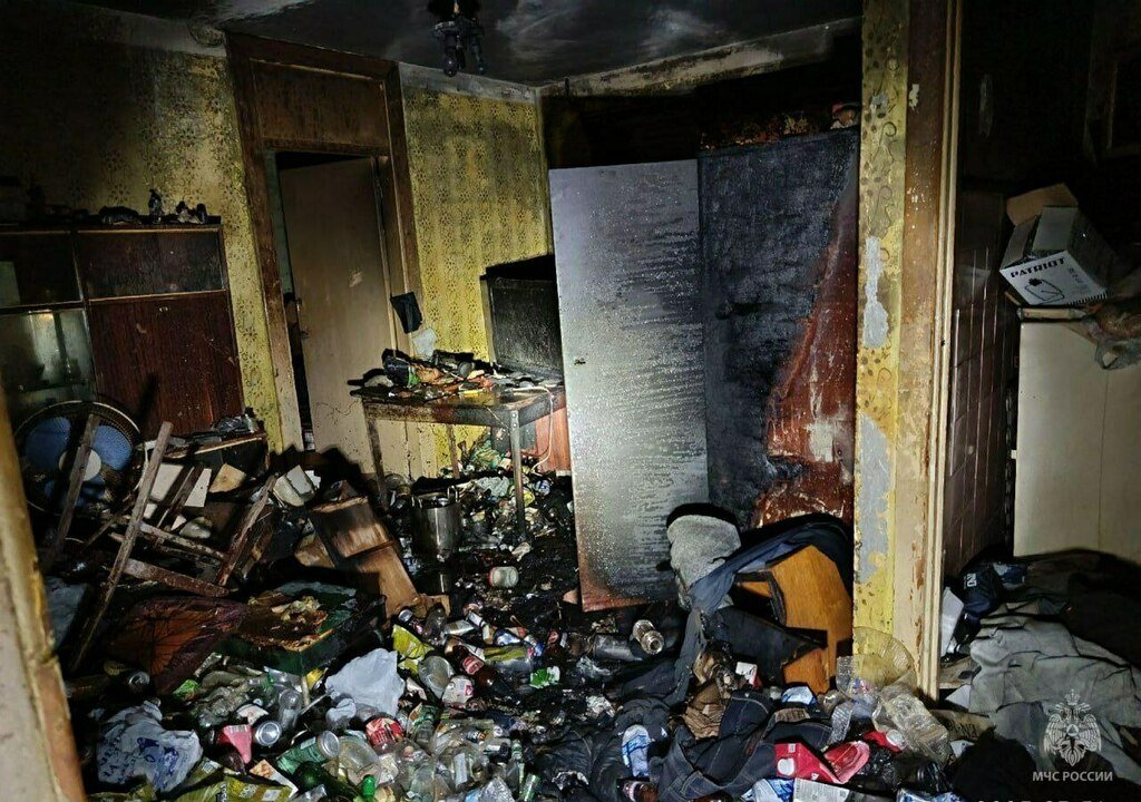 Загорелась квартира, хозяин которой вёл асоциальный образ жизни. Возгорание тушили 12 сотрудников и 5 единиц техники МЧС России.