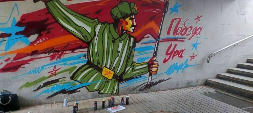 На днях рисунок победительницы конкурса появился в пешеходном подземном переходе у ЦУМа на ул. Воровского. Художники оформили две стены на патриотическую тему.