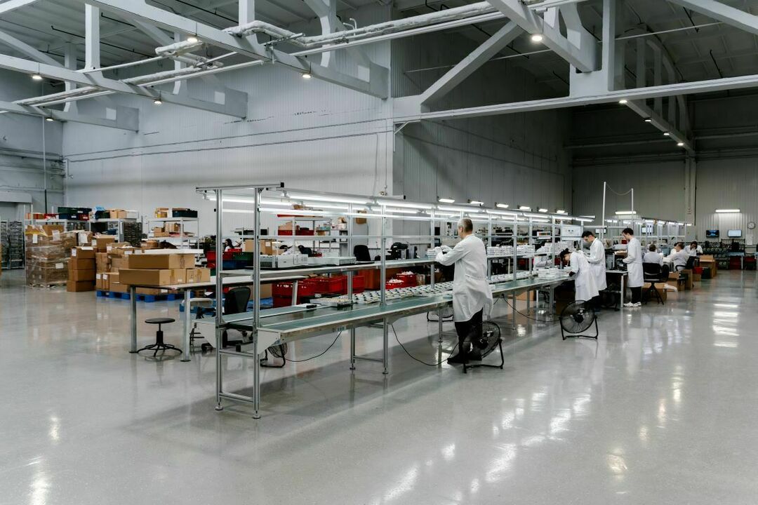На предприятии обеспечен полный цикл производства — монтаж электронных компонентов, конфигурация и установка ПО, калибровка Wi-Fi и GPON, тестирование, упаковка и отгрузка потребителям.