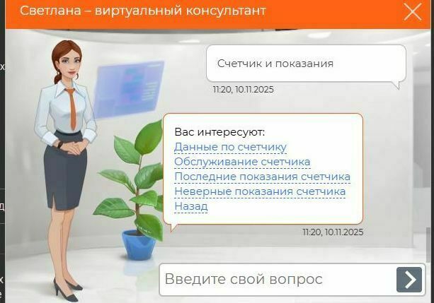 Сейчас у клиентов энергокомпании появилась возможность с помощью виртуального помощника «Светланы» дистанционно получить справку о расчётах и оформить перерасчёт по показаниям. Виртуальный помощник доступен круглосуточно, без очередей по удобному для клиента каналу связи.