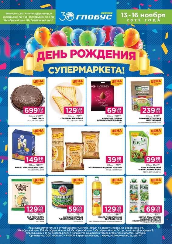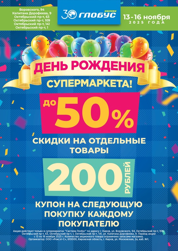 Отмечайте Дни рождения супермаркетов «Система Глобус», совершайте выгодные покупки и получайте подарки!