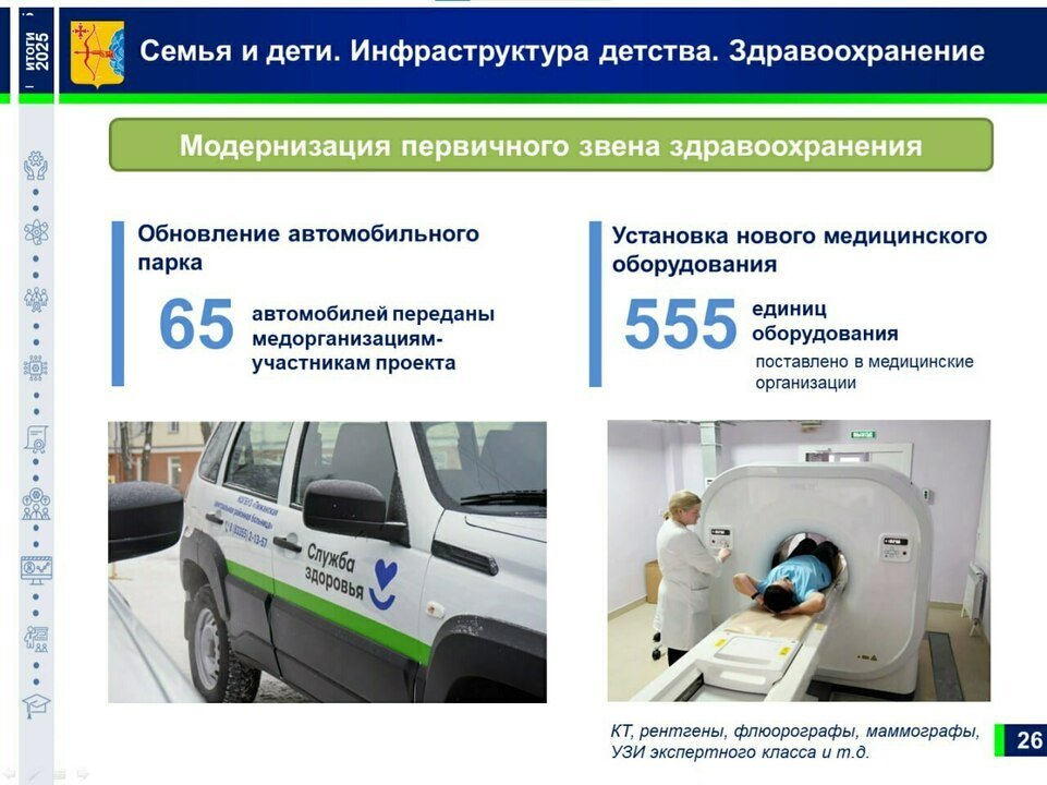 - В медицинские организации региона поставлены 65 автомобилей и 555 единиц оборудования, — привела она конкретные цифры.
