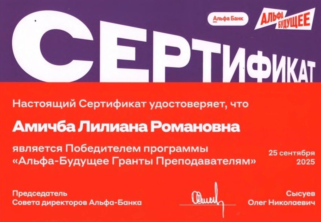 - Победа в программе «Альфа-Будущее Гранты Преподавателям»