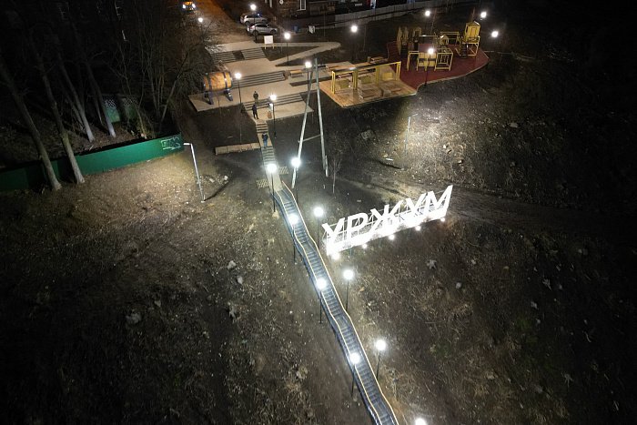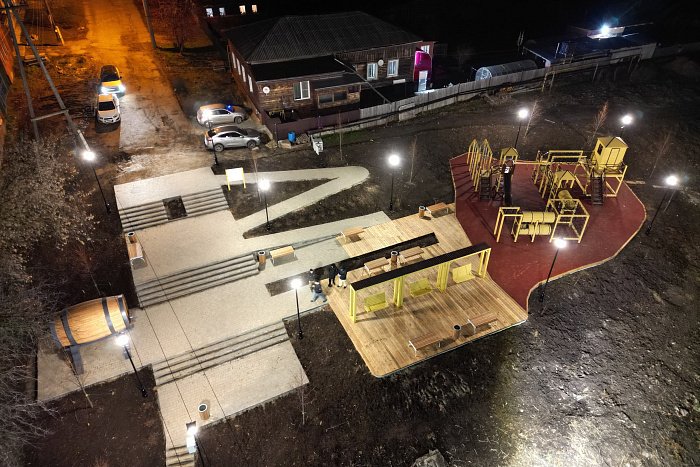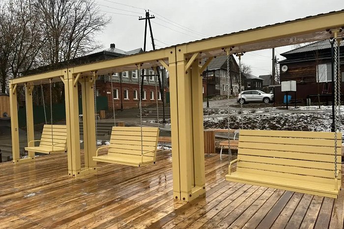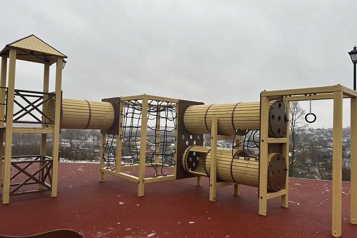 Смонтировано освещение, видеонаблюдение, установлена стела и арт-объект «Уржум», арт-объект «Бочка с квасом», качели.