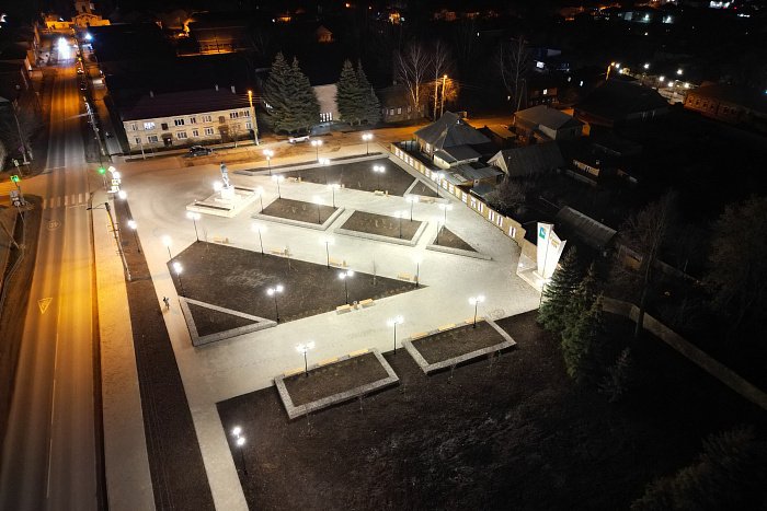 По проекту вымостили площадь им. С.М. Кирова, отремонтировали тротуары на ул. Советской, реконструировали спуск на косогоре, обустроили прогулочную зону с детской площадкой и арт-объектами, у Троицкого собора создали многофункциональный торговый и остановочный павильон.