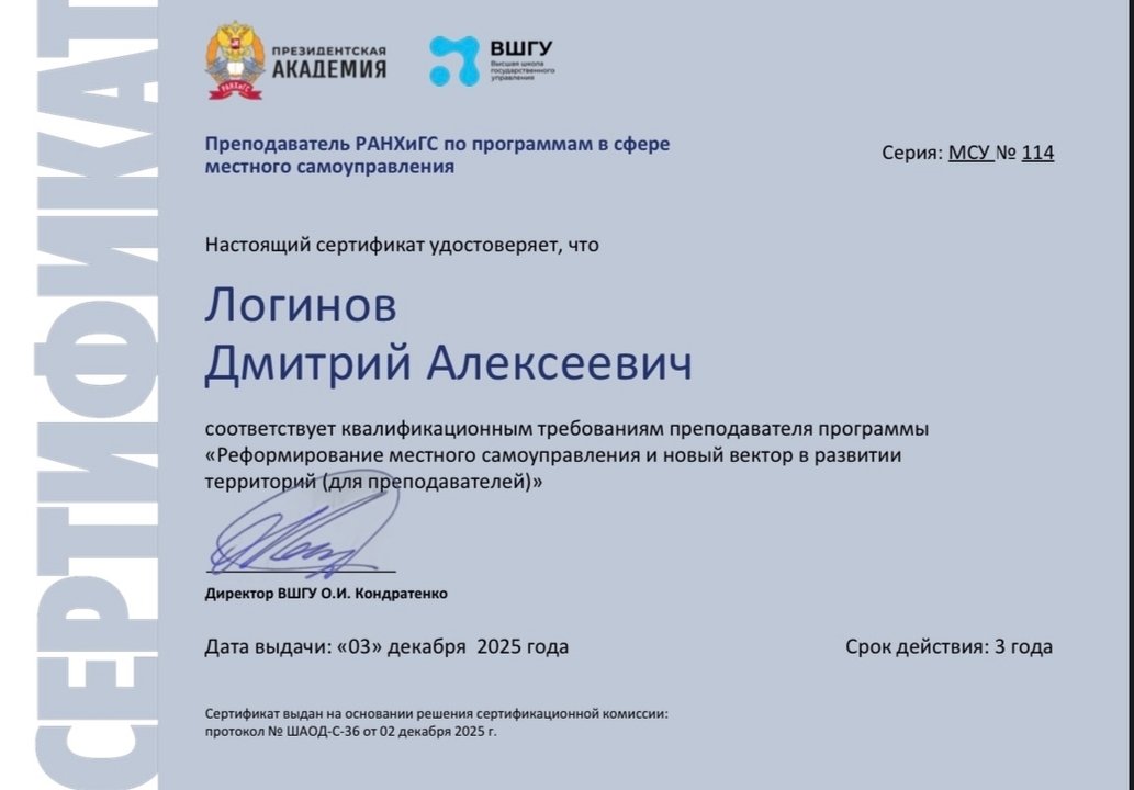 Преподаватели Кировского филиала Президентской академии Галина Александровна Михеева и Дмитрий Алексеевич Логинов получили сертификаты об успешном прохождении аттестации, подтверждающие соответствие высоким квалификационным требованиям для ведения программы: «Реформирование местного самоуправления и новый вектор в развитии территорий (для преподавателей)».