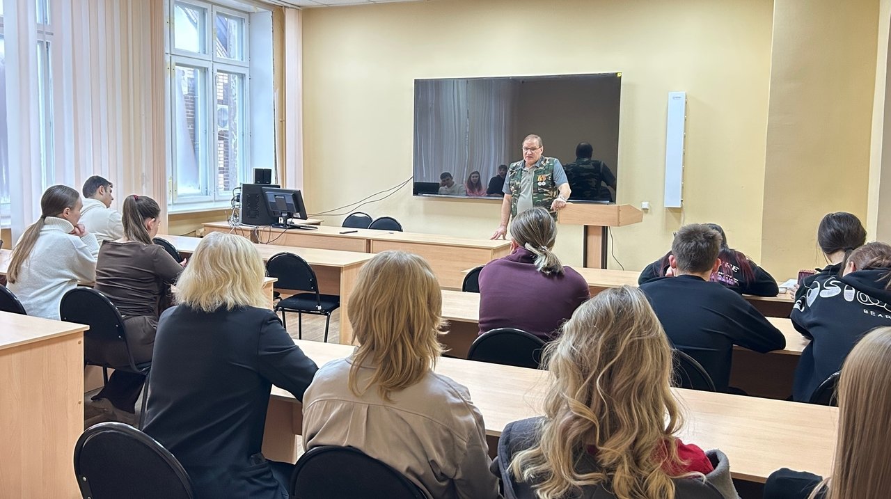 Студенты получили возможность пообщаться с ветераном боевых действий и участником программы «Вятский корпус Защитников Отечества» – Николаем Геннадьевичем Целоусовым.