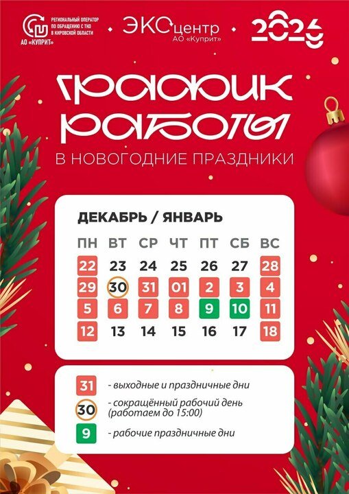 Для вашего удобства публикуем график работы Экоцентра, Экодома и Экопункта в праздничные дни: