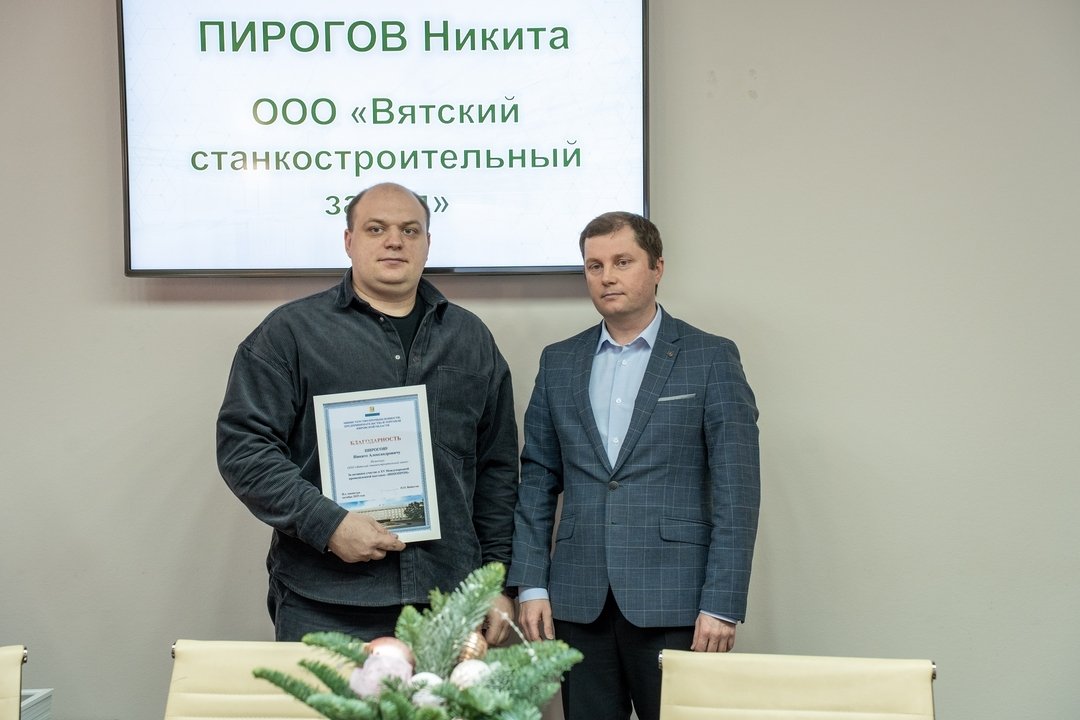 • Инженеры Вятского станкостроительного завода Владислав Сорокин и Никита Пирогов лично привезли, настроили и запустили станок на выставке «Иннопром» в Екатеринбурге, представили потенциал региона.