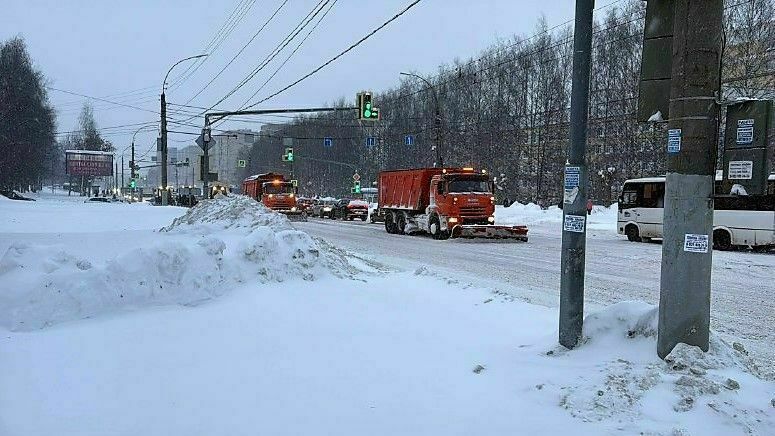 Кирове продолжается снегопад. Подрядчика была поставлена задача к утру обеспечить безопасный проезд транспорта и проход пешеходов по дорогам и тротуарам.