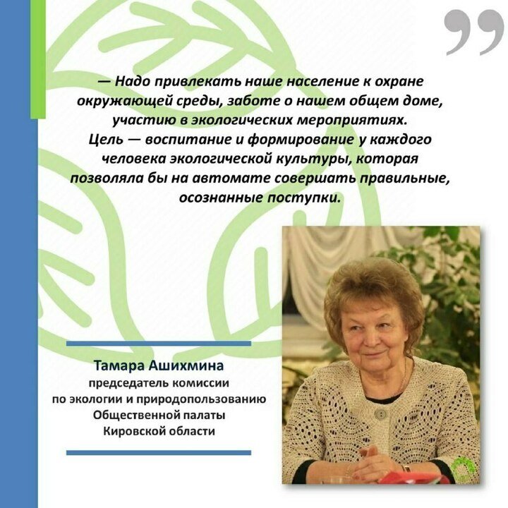 - Надо привлекать наше население к охране окружающей среды, заботе о нашем общем доме, участию в экологических мероприятиях. Цель — воспитание и формирование у каждого человека экологической культуры, которая позволяла бы на автомате совершать правильные, осознанные поступки, — подчеркнула Тамара Ашихмина.