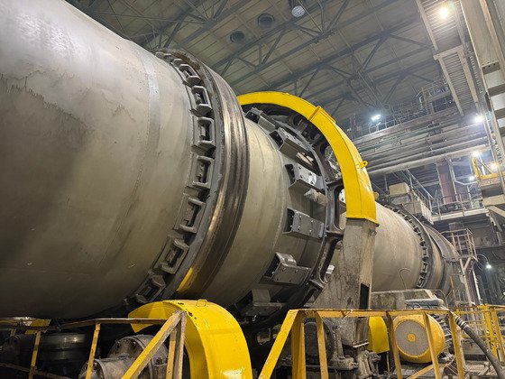 Это цилиндрический вращающийся резервуар с лопатками внутри, длиной 18 метров и 3,5 метра в диаметре. В нем проходит процесс сушки карбоната кальция, который является полуфабрикатом для производства всех марок нитрата кальция.