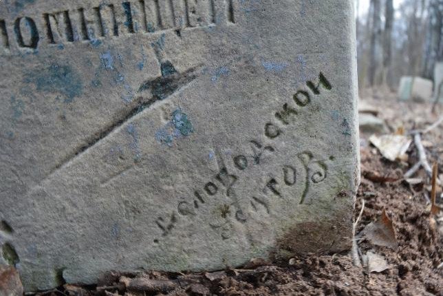 Самым распространенным материалом для надгробий считалась опока – мягкий известняк, который добывали неподалеку от Кукарки. В самой Кукарке в середине XIX века работало 14 мастеров – каждый из них, безусловно, нуждался в некоей рекламе. Ее роль выполняло клеймо.