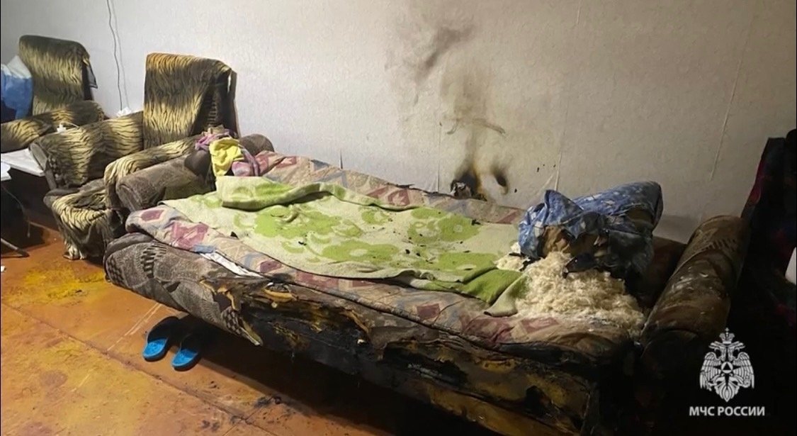 В результате происшествия сгорел матрас, обгорел диван, а также закоптились стены комнаты. При пожаре погибла женщина.