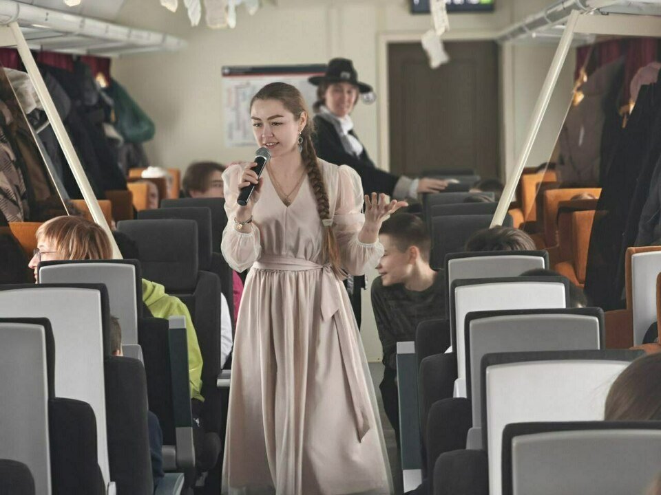 Для юных путешественников устроили настоящее представление. В вагонах и на станциях их развлекали аниматоры в костюмах героев народных сказок — Иван да Марья, Баба Яга, Кощей Бессмертный и другие персонажи. Дети участвовали в интерактивных музыкальных и танцевальных выступлениях, отвечали на вопросы викторин на знание фольклора и своими руками создавали волшебные открытки на мастер-классе.