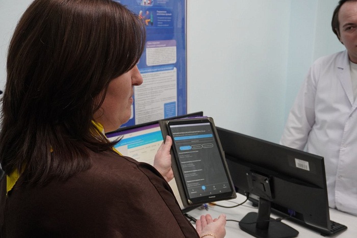 В кабинете врача терапевта федеральному министру продемонстрировали работу по записи к врачу и проведение телемедицинских консультаций в мессенджере МАХ.