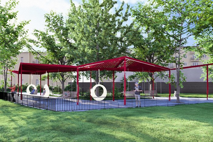На этом участке вдоль реки расширят пешеходную зону и вымостят ее брусчаткой, создадут смотровые площадки, установят освещение, видеонаблюдение, качели в стиле алых парусов, шахматные столики и скамейки, отремонтируют ротонду и для нее создадут архитектурную подсветку. На всей территории выполнят озеленение.