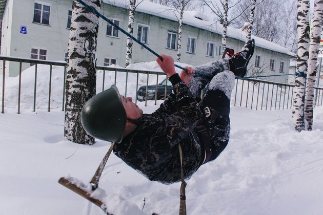 Ребята преодолели комбинированную полосу препятствий: полевую дистанцию 1,5 км с туристическим снаряжением и автоматом. Она включала в себя преодоление минного поля, метание гранаты, оказание медицинской помощи, навесную переправу и многое другое.