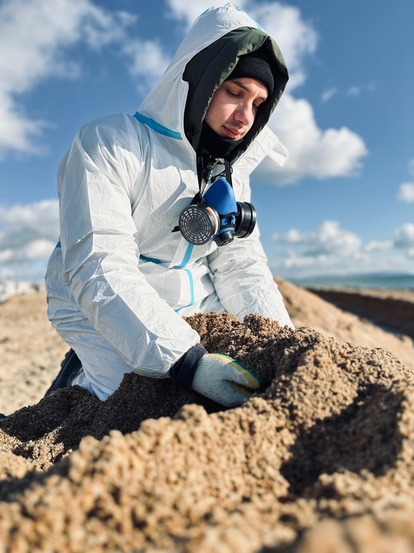 Неделя в Анапе и станице Благовещенской. Сначала нас привели на пляж под Анапой. Там уже почти всё убрали, остались лишь мелкие крупинки. Но показали столбы от навесов: на них был метровый слой мазута. Я подумал: «Как такое вообще возможно?». Потом поехали в станицу. С виду чисто. Начинаешь копать и на глубине до метра находишь огромные пятна. Иногда один кусок мазута заполнял целый мешок. Приходилось резать его лопатой, чтобы влезло.
