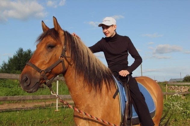 Особое место в жизни Сережи занимает верховая езда. Ведь иппотерапия, помимо физического развития, улучшает психологическое состояние, дарит положительные эмоции от общения с лошадьми.