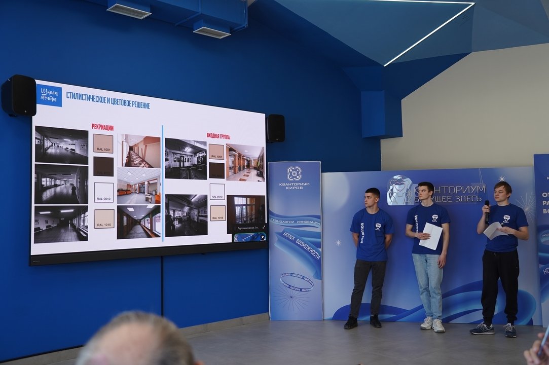На защите выступили студенты из Вятского государственного университета, которые представили дизайн-проекты по модернизации помещений 8 школ в г. Кирове и г. Кирово-Чепецке, вошедших в программу капремонта.