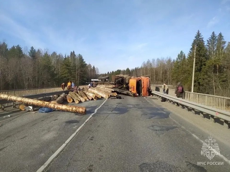 Сегодня в Слободском районе на трассе Р-243 у села Ильинское произошло ДТП — столкнулись лесовоз и легковой автомобиль «Рено Дастер». В результате столкновения лесовоз опрокинулся, бревна рассыпались по проезжей части и травмировали двух человек — работников дорожной организации, которые проводили ремонтные работы. Пострадавшие доставлены в лечебное учреждение, сообщает ГУ МЧС по Кировской области.