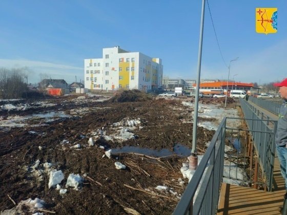 Подрядчик приступил к подготовке строительной площадки для создания плавательного бассейна в г. Слободском. Сейчас на территории убирают растительность и кустарники. После будет создана система отвода воды, выравнена поверхность.