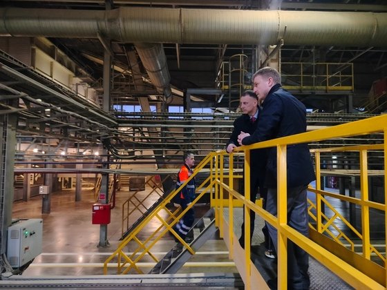 Руслан Цуканов провел для гостей экскурсию по территории «Нововятского лесоперерабатывающего комбината» и рассказал о достижениях производства. Предприятие работает с 1933 года, начинало с производства лыж, а теперь специализируются на плитах ОСП. Такие плиты применяются в упаковке, наружных и внутренних работах, отправляются на экспорт.