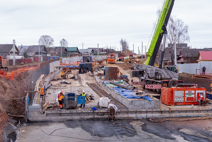 В Нововятске продолжается строительство тоннеля под Транссибирской магистралью. Подрядчик создает «тело» тоннеля, работает над формированием стартового и приёмного котлованов: возводит подпорные стенки, укладывает бетон и геотекстиль, монтирует армированный каркас откосов.