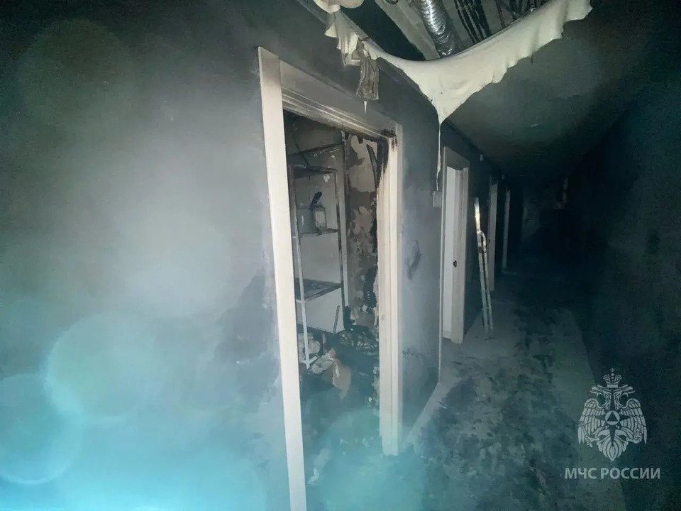 В результате происшествия обгорело имущество в кладовой, частично оплавился потолок в коридоре. На месте работает дознаватель МЧС. Предварительная причина возгорания — короткое замыкание электропроводки.