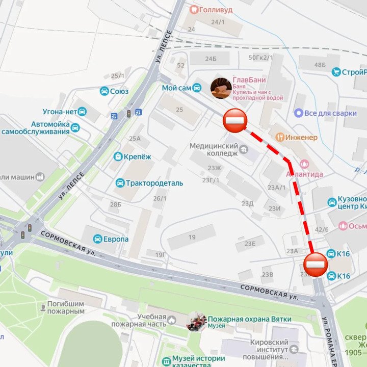 В связи с проведением ремонтных мероприятий участок дороги вблизи указанных адресов временно перекрыт. Ограничение введено для обеспечения безопасности горожан и беспрепятственной работы спецтехники.
